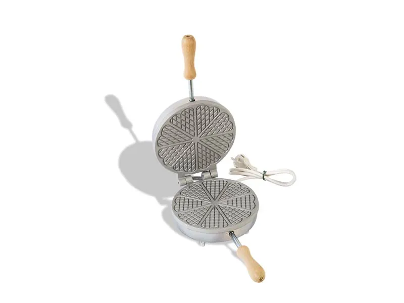 Biscottiera elettrica tonda sottile 8 cuori con termostato e protezioni. Cialda sottile e croccante, è possibile dividerla in 8 piccole cialdine a forma di cuore che possono essere usate per guarnire gelati e altre preparazioni cremose.