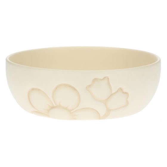 Colora la tua tavola con la ciotola in ceramica decorata a mano, da usare come pratico porta frutta ma anche come centrotavola per arricchire il tuo living con un tocco di eleganza tipico della linea Elegance: una collezione che gioca con le maxi icone del patrimonio Thun, con trattamento moderno, tagli fotografici ed un gioco di luci ed ombre, di rilievi e impressioni, dal color crema con patina realizzata a mano nei disegni con matite ed acquerelli, riportati poi fedelmente su ciascun prodotto. Sarà una preziosa idea regalo adatta ad ogni stile.